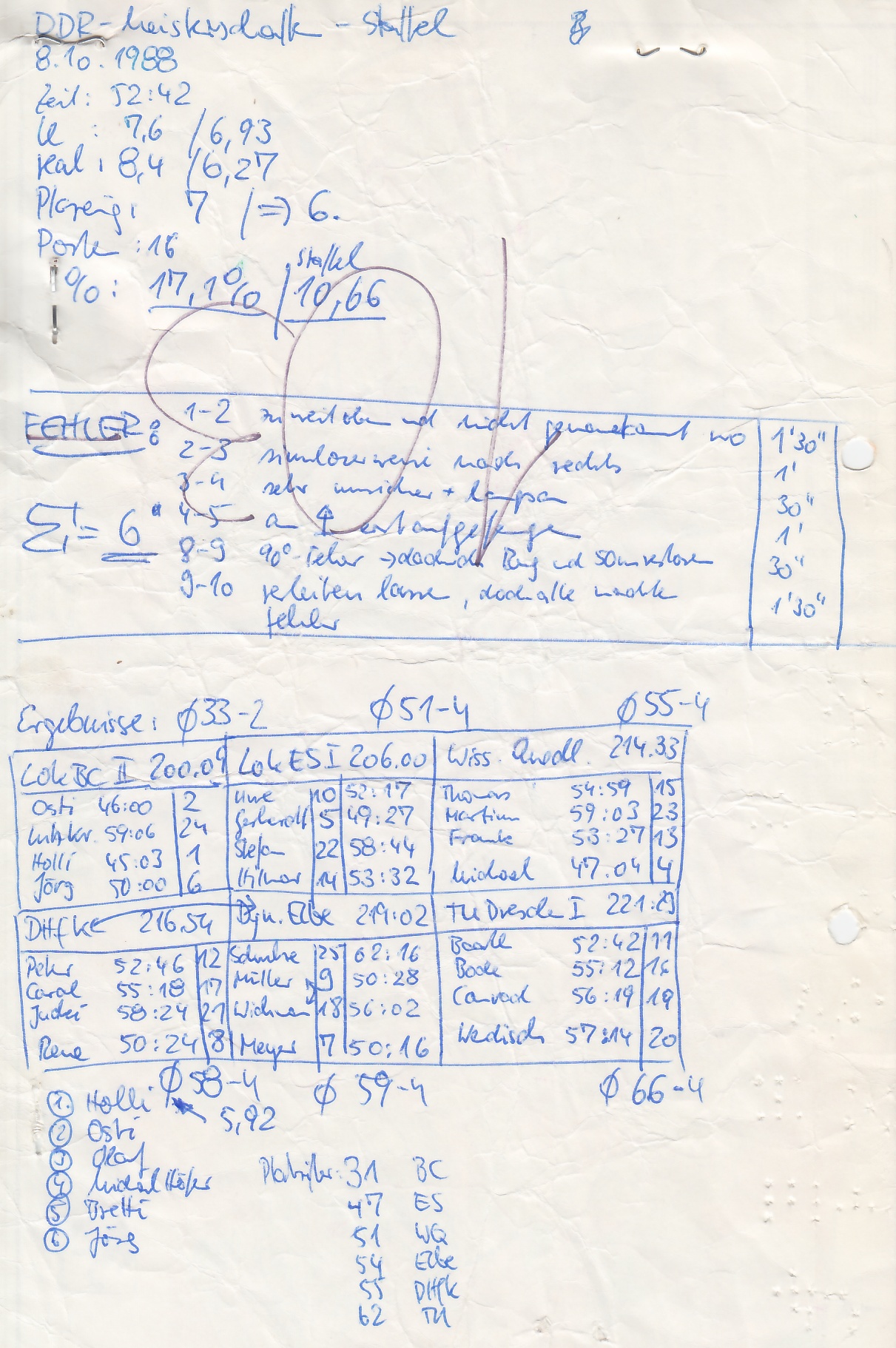 6. TU Dresden (Veikko Baath, ANdreas Bode, Helmut Conrad, Mayk Wendisch) 221:29 |