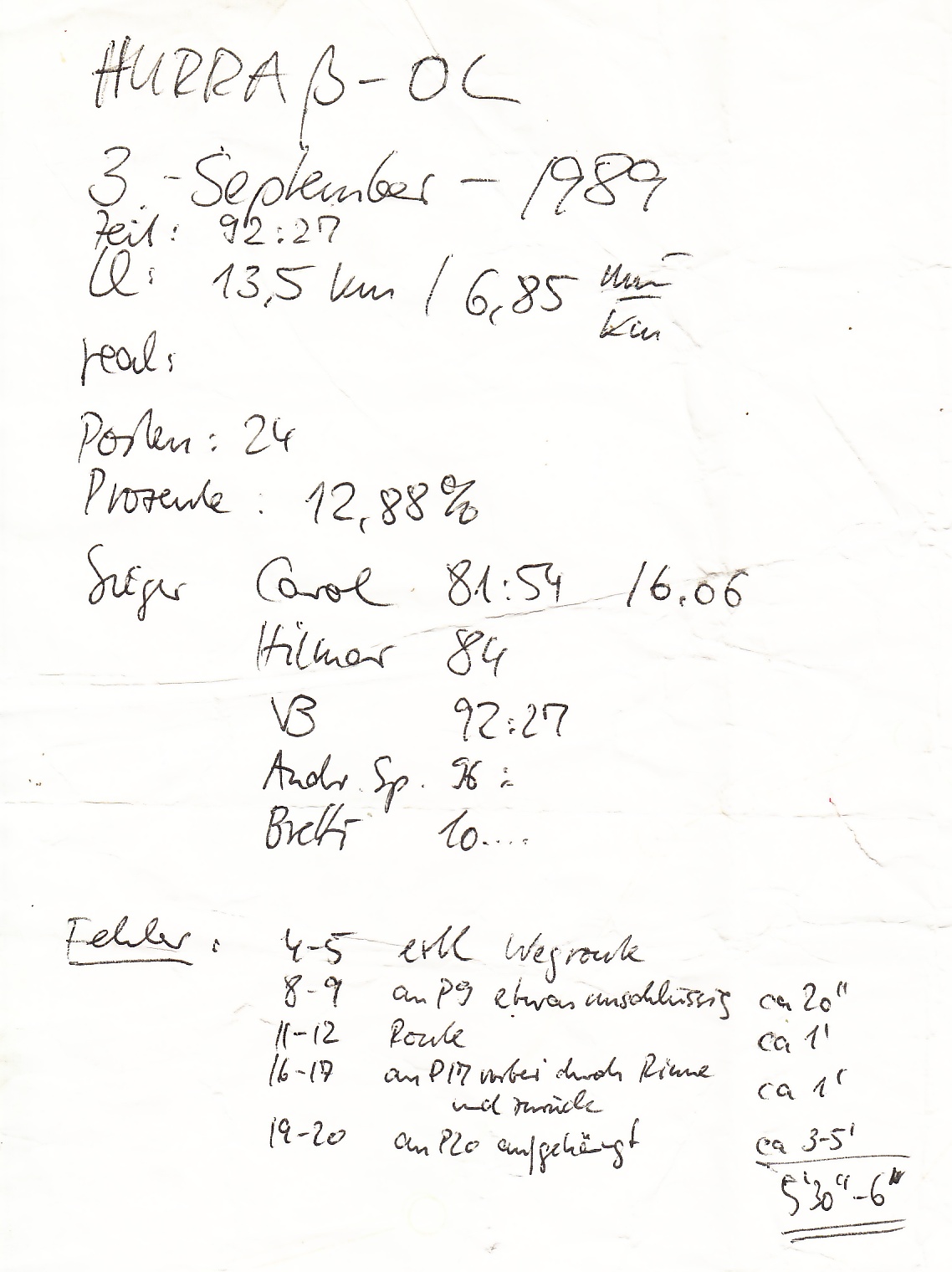 1 | 235 | 3 | veikko | Hurraß OL | 1989-09-03 00:00:00 | Heideberg / Gröden / Sachsen | |