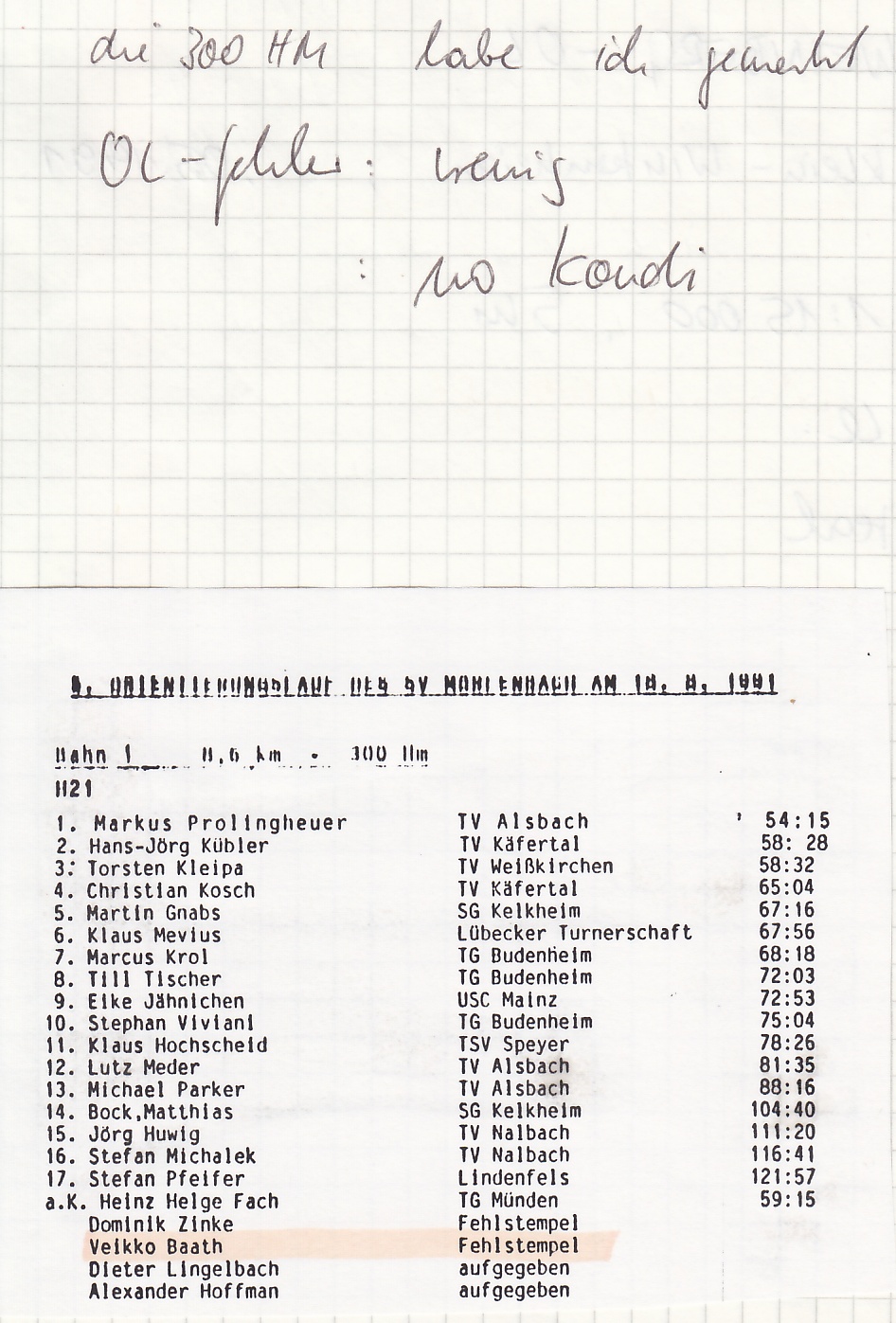 1 | 265 | 3 | veikko | 5.OL d. SV Mörlenbach | 1991-08-18 00:00:00 | Walsee - Juhöhe / Mörlenbach / Hessen | |