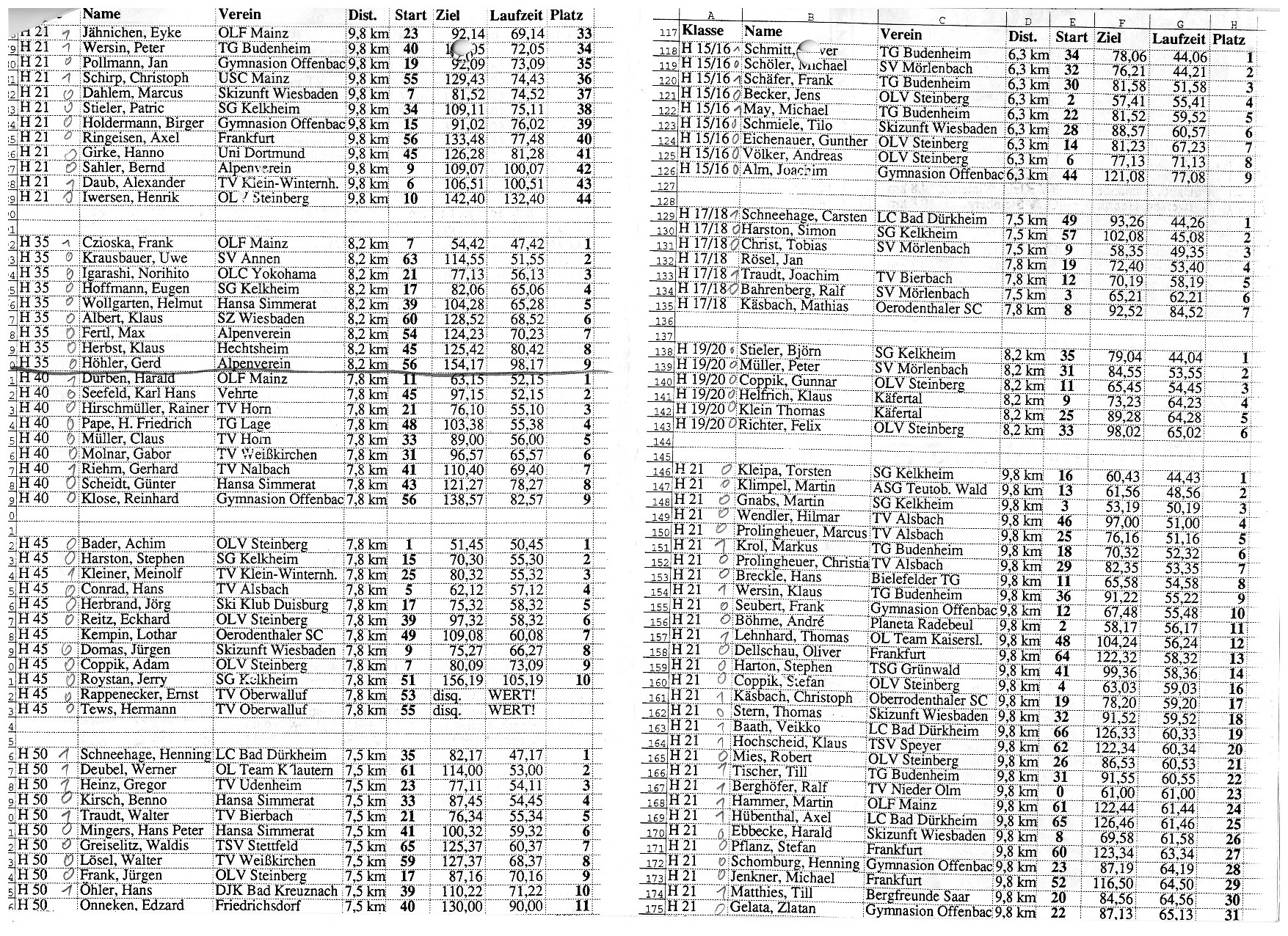 1 | 21873 | 19462 | 1 | Veikko | 1 | 1993-11-06 00:00:00 | Weinberg-OL in Saulheim | 217 | 00:00:00 |