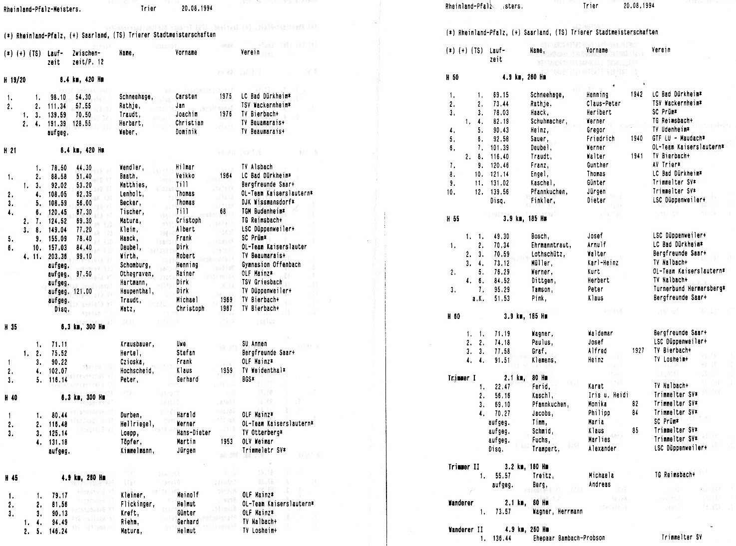 1 | 21883 | 19472 | 1 | Veikko | 1 | 1994-08-20 00:00:00 | Rheinland-Pfalz-Meisterschaften 94 | 217 | | |