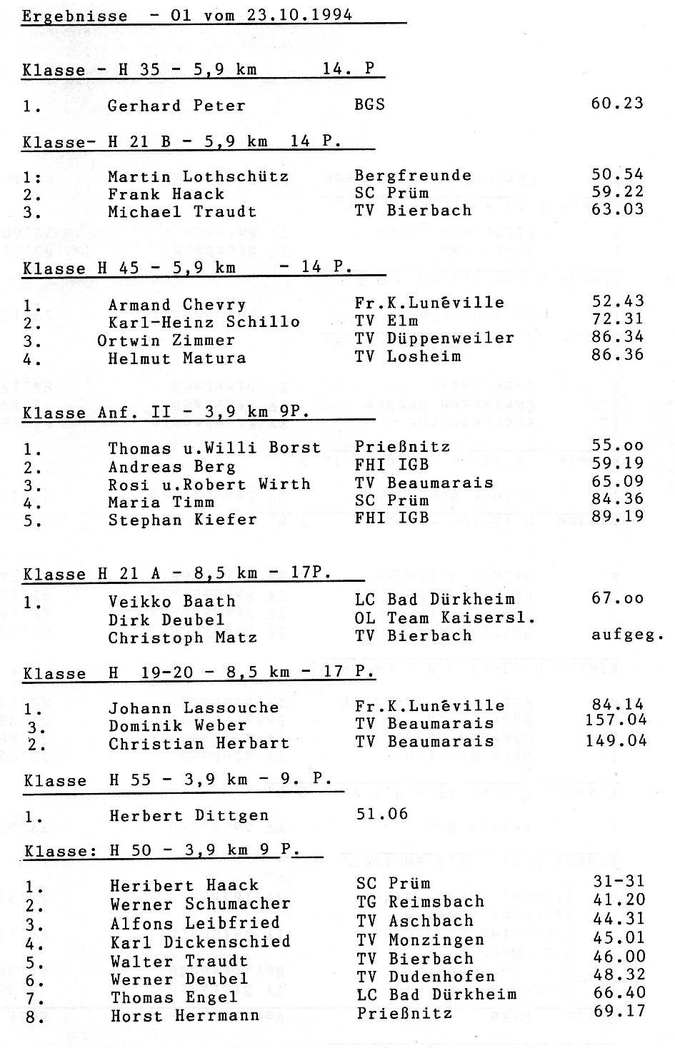 1 | 21889 | 19478 | 1 | Veikko | 1 | 1994-10-23 00:00:00 | Robert-Hößler-Gedächtnis-OL (St.Ingbert) | 217 | | |