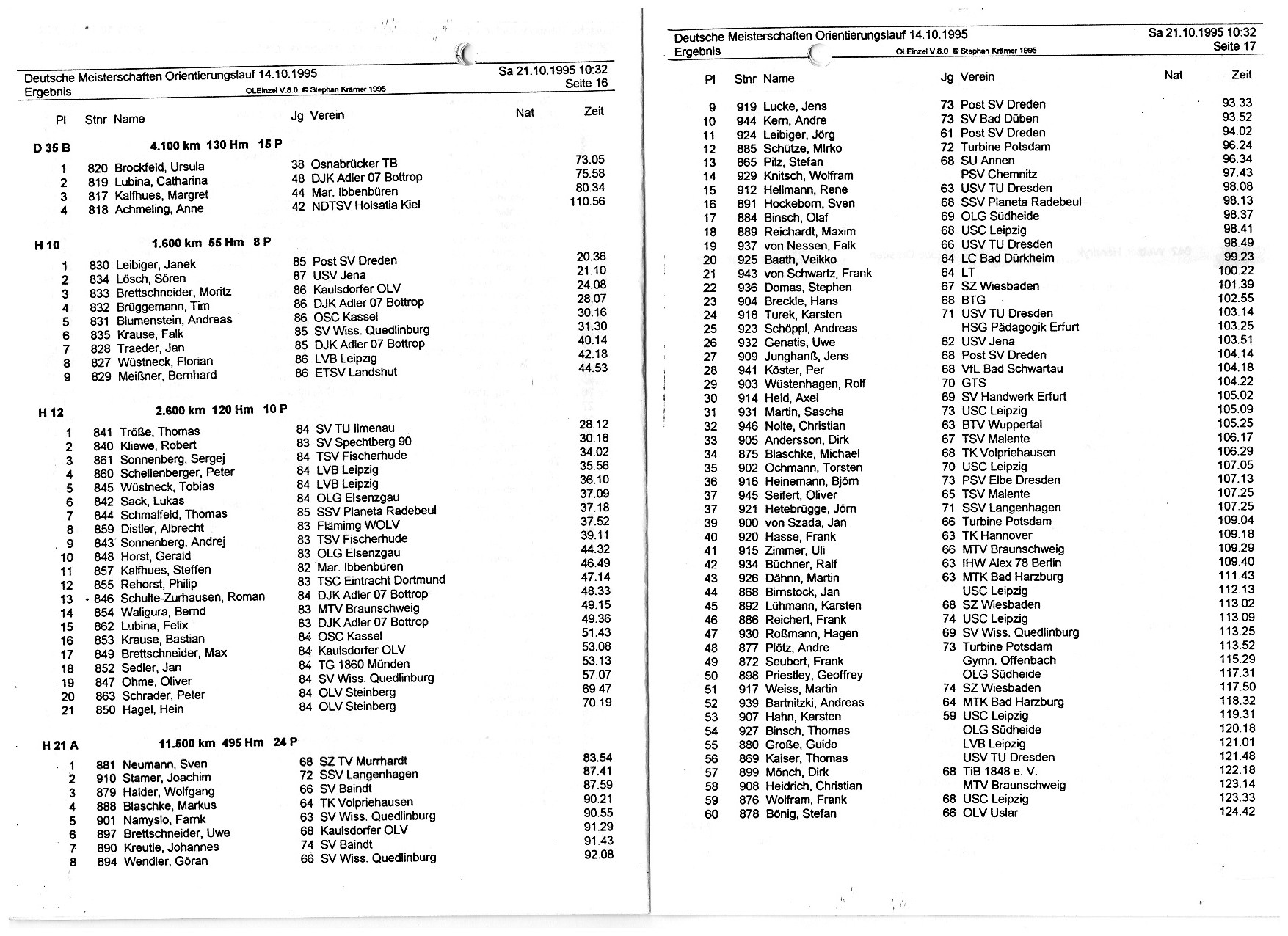 1 | 21905 | 19494 | 1 | Veikko | 1 | 1995-10-14 00:00:00 | DM Klassik in Bad Essen | 220 | | |
