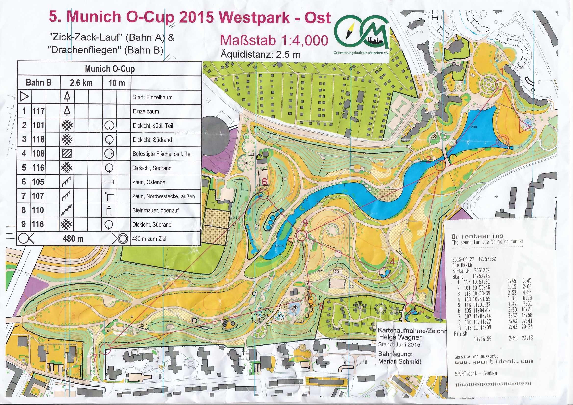 1 | 1019 | 1 | ole | Munich O-Cup 2015 Lauf 5 | 2015-06-27 10:53:00 | Westpark - Ost / München / Bayern | |