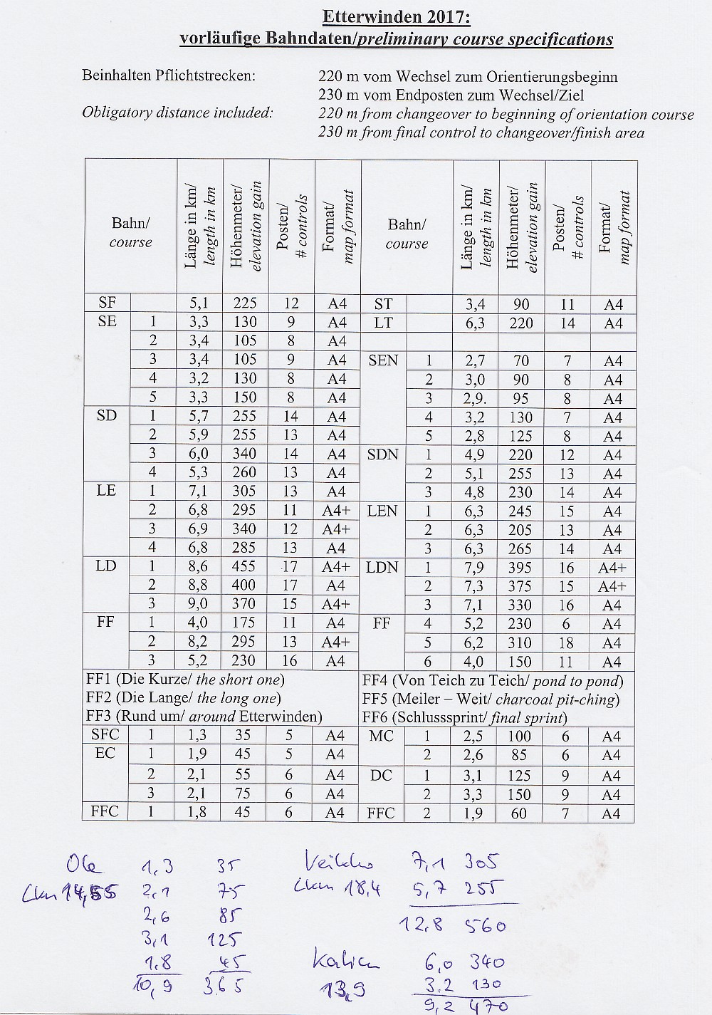 Spezifikation | International (offen) / Fuss-OL / Tag / Staffel | Tag / Normal-OL / Mittel | Tag / Normal-OL / Mittel | ||||||||||||
